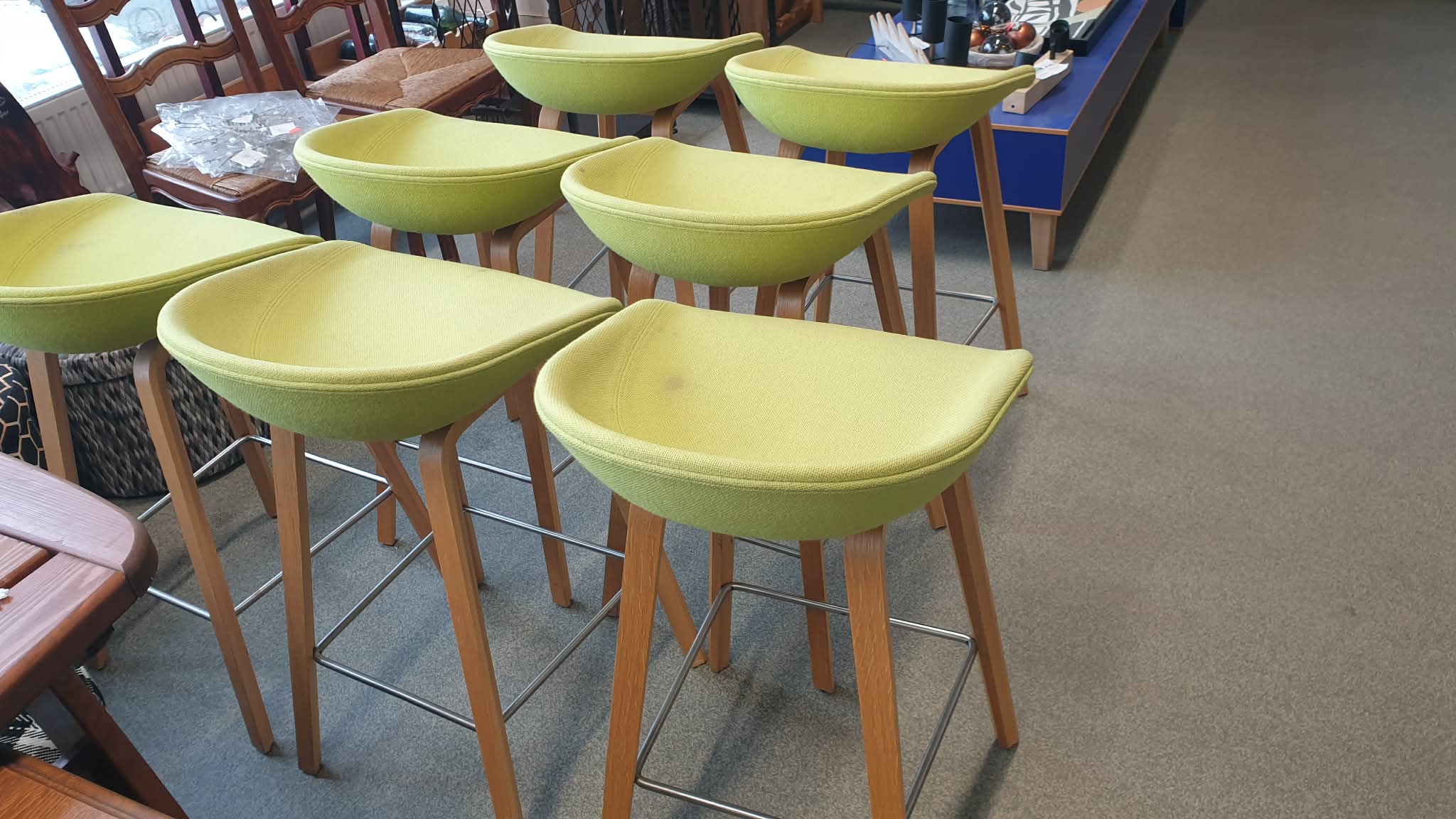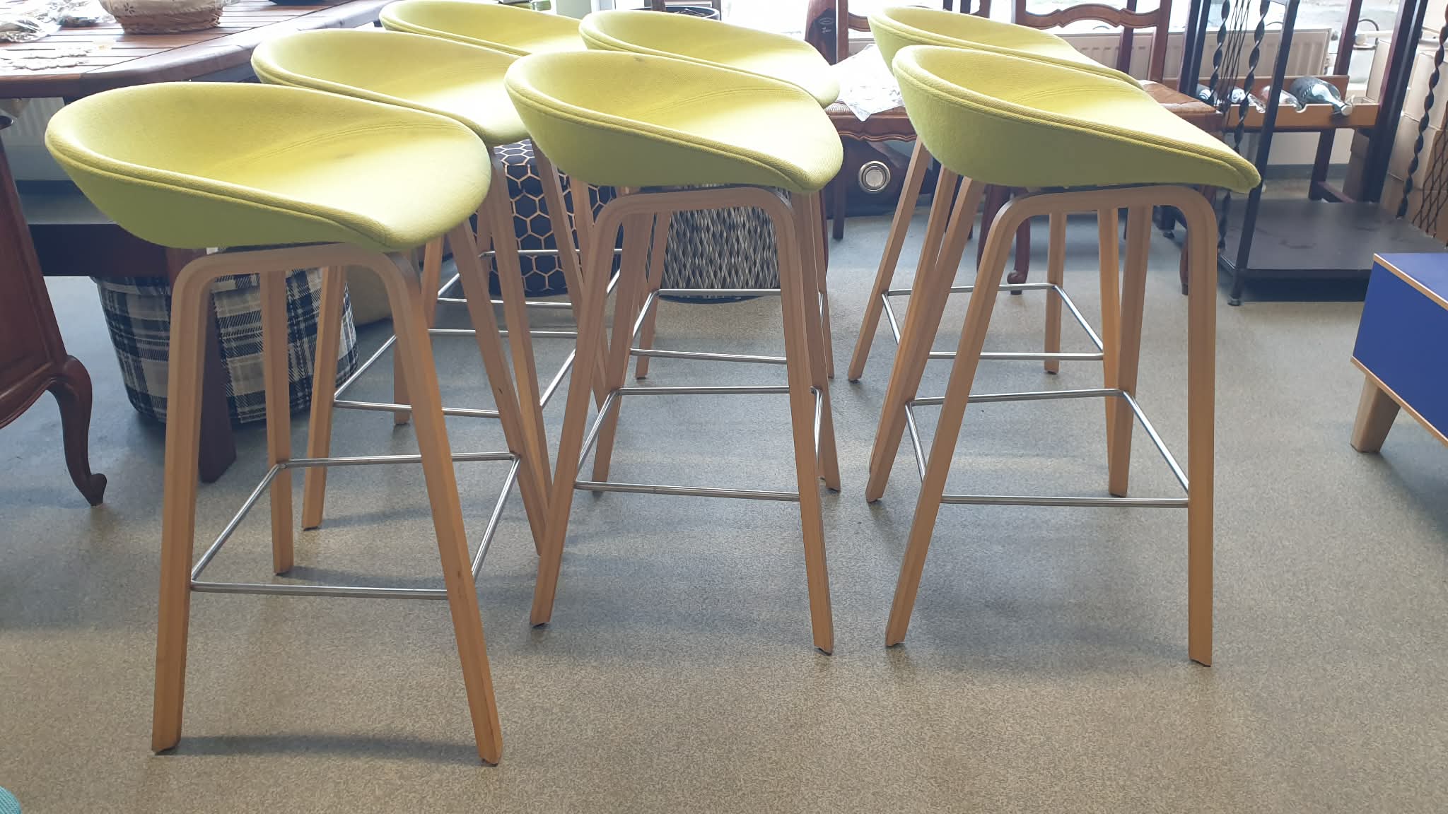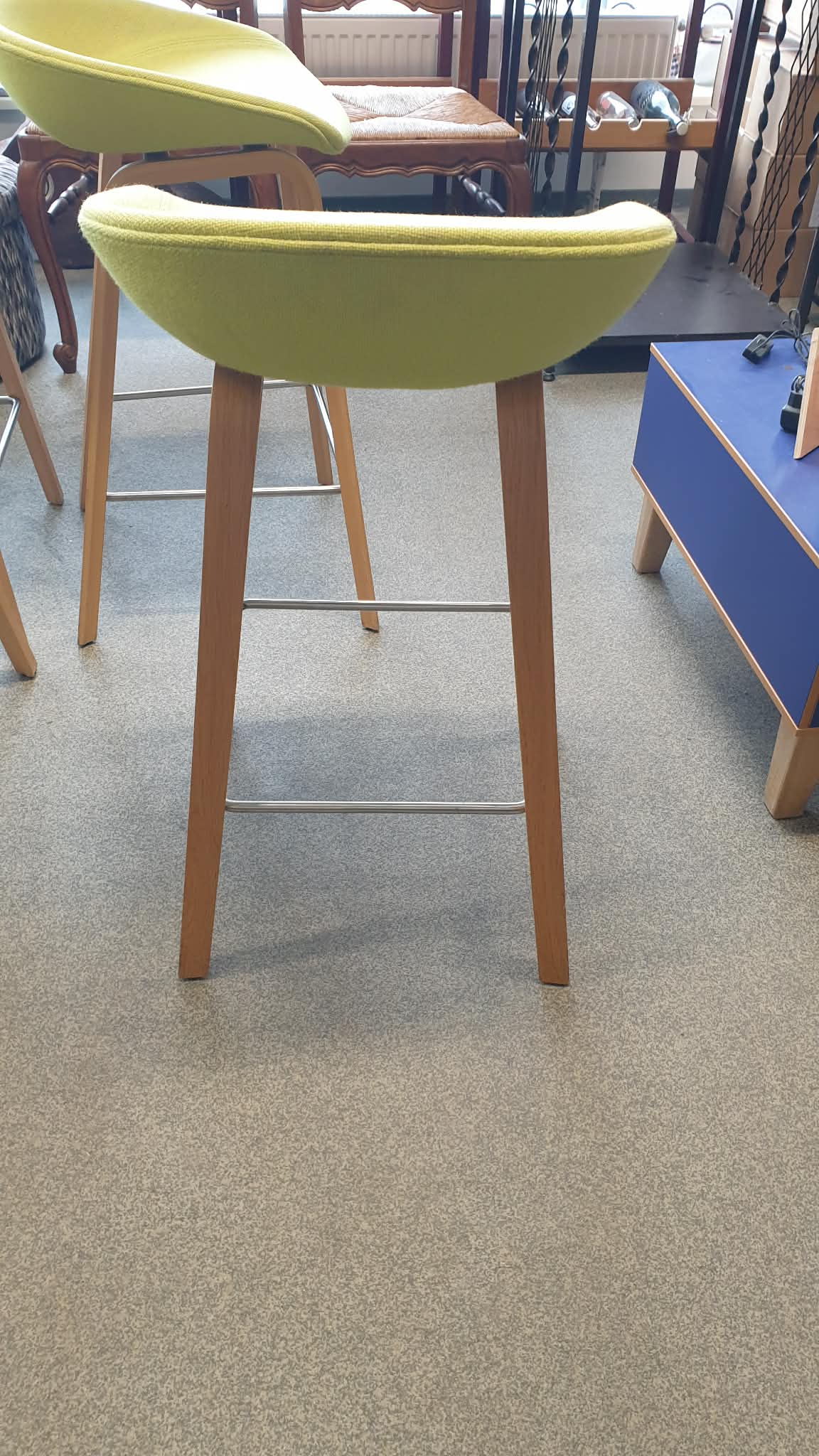 Kasutatud, heas korras baaritoolid, mõõtudega: 46 x 43, kõrgus 76, istumiskõrgus 65
