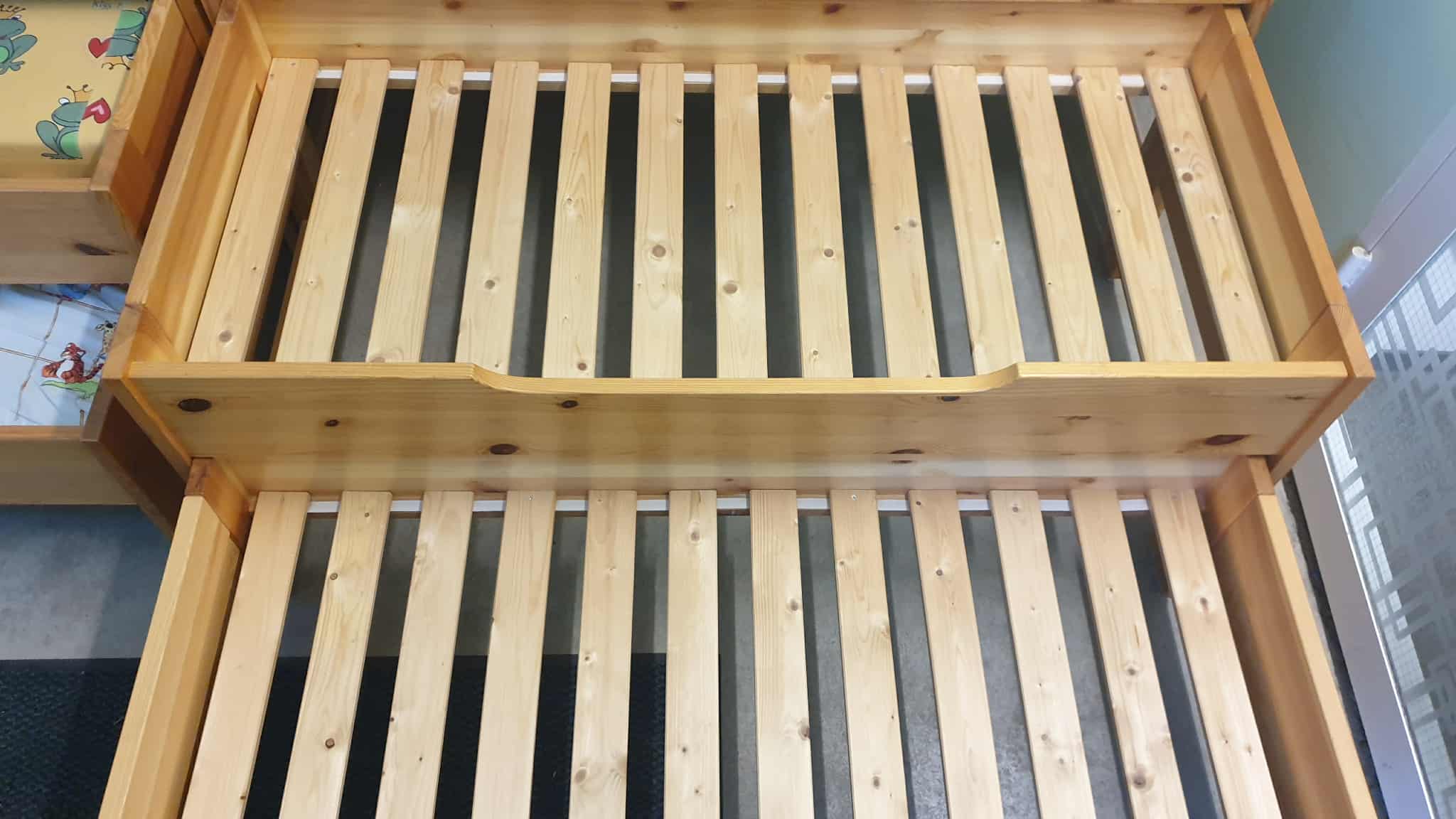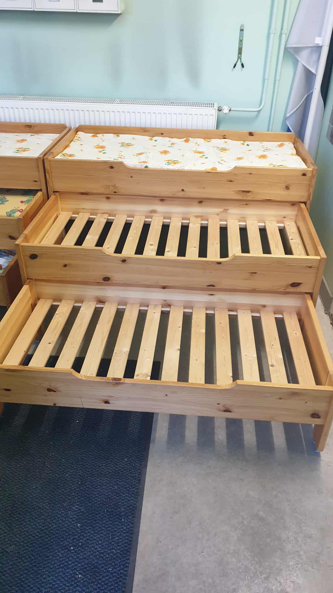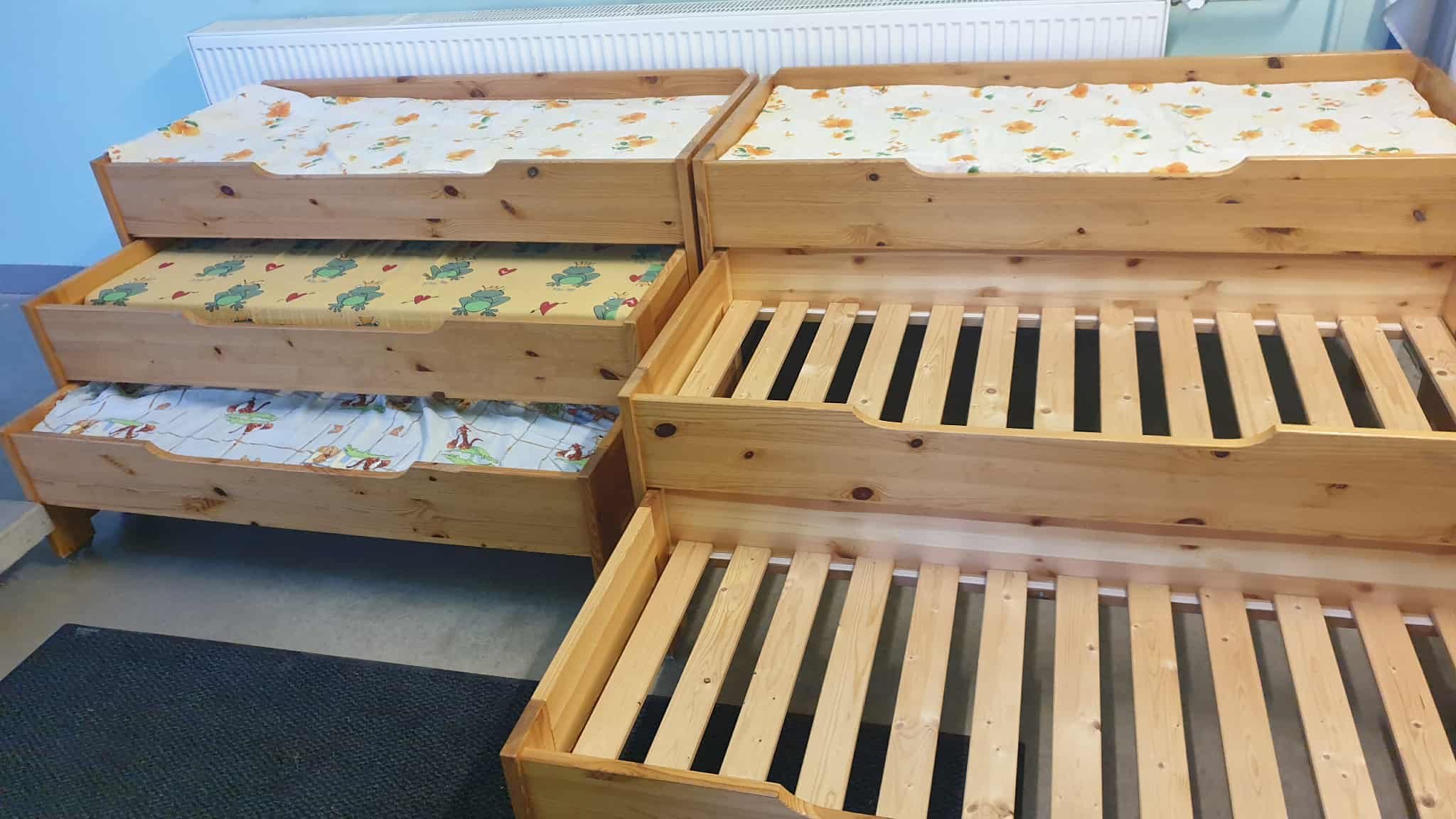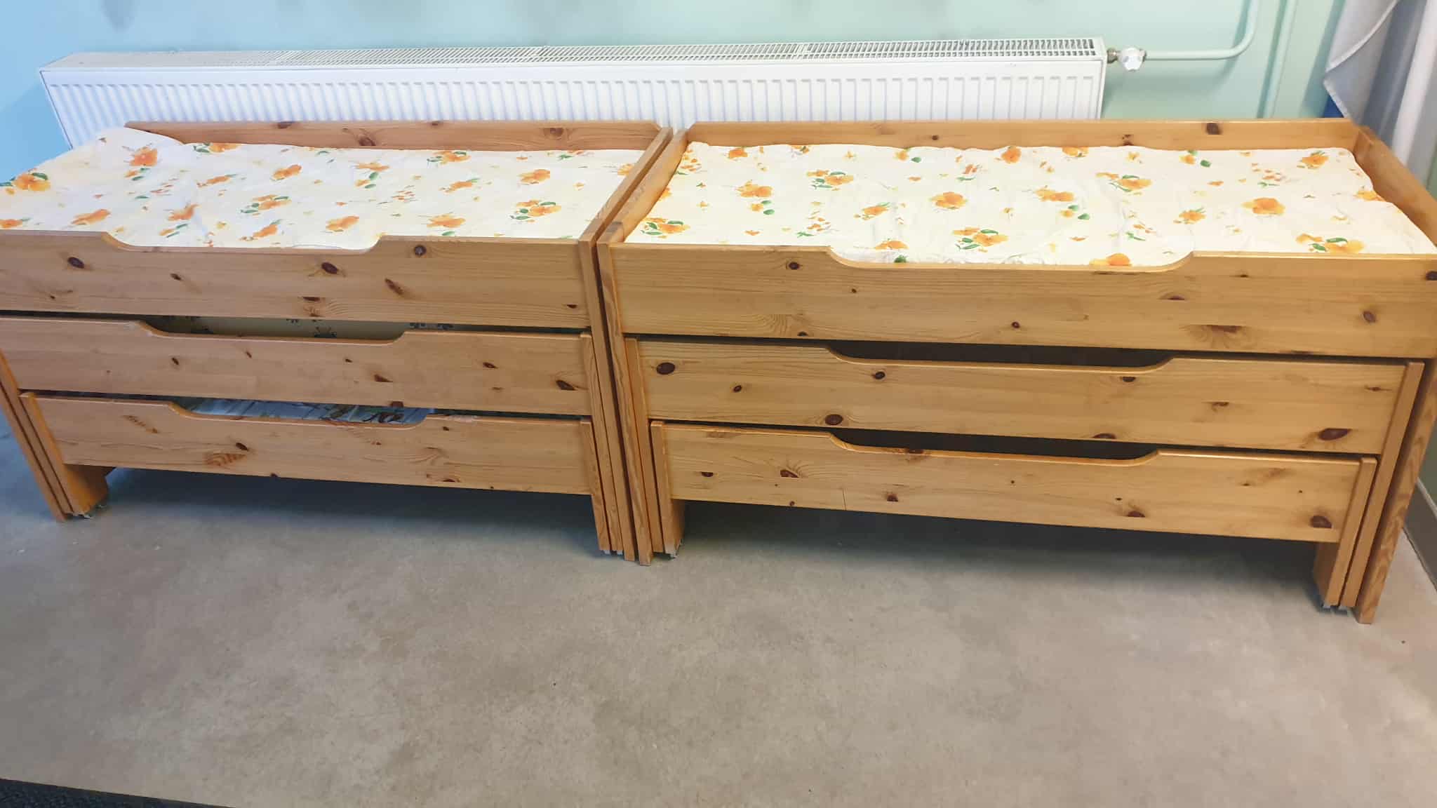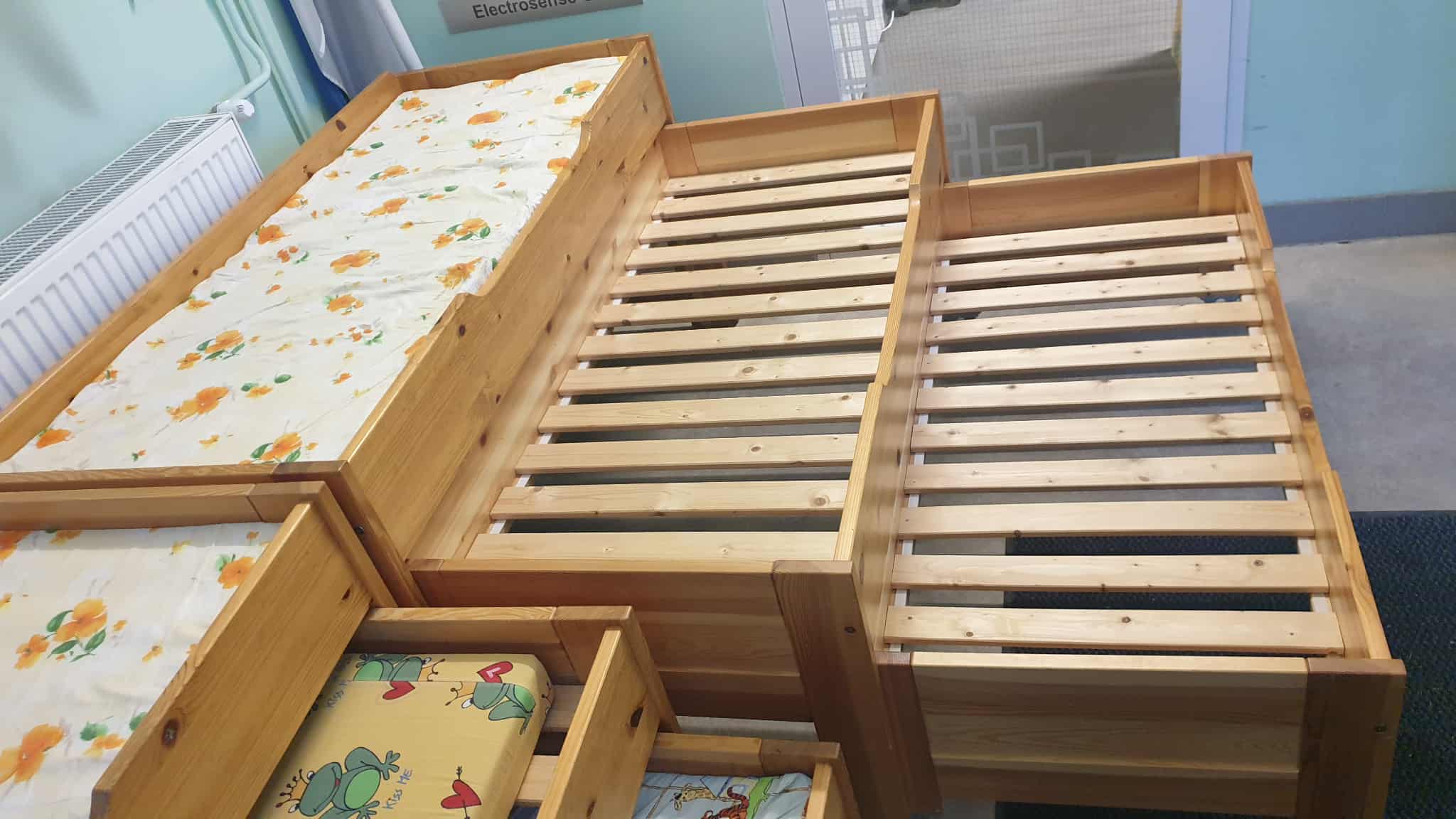 Kasutatud, heas korras, täispuidust, kolmekohalised lastevoodid, mõõtudega: 65 x 145, kõrgus 75